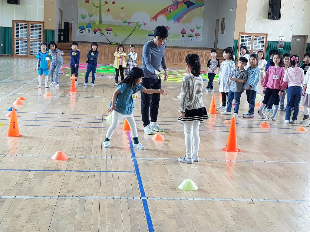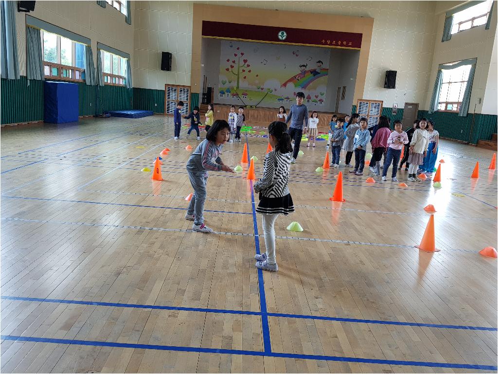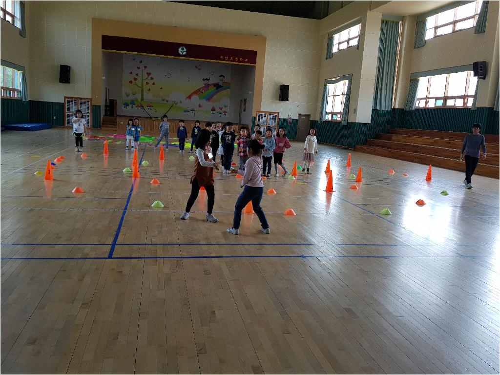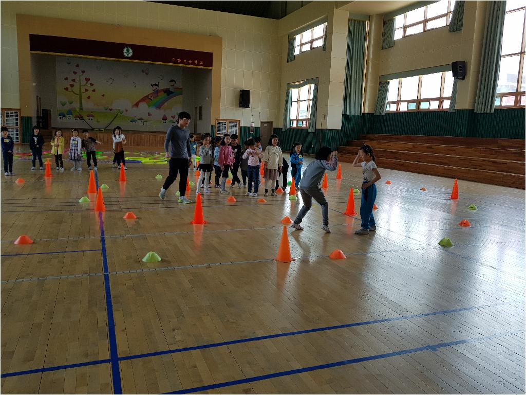 4월달 돌봄친구들의 몸도 마음도 튼튼하게 해줄 스포츠 강좌 2번째시간 가졌습니다. 힘들것 같다고 하던 친구들도, 가위 바위 보 와 뛰는것 조차 어색하던 친구들이 이제는 서로의 편을 응원하고 격려하는 마음을 가지게 된 것 같습니다. 2번째 시간 .................................. 아이들을 달팽이 놀이및 여러가지 달리기 시간을 가졌습니다. 달팽이 모양을 따라 뛰어서 만나는 곳에서 가위,바위,보 이기는 친구는 계속 달팽이 집을 따라 뛰어가 상대편에 도착하면 이기는 게임입니다. 처음에는 어색하게 뛰던 친구들도 친구들의 응원을 받으니 다리가 보이지 않을 정도로 열심히 뛰는 모습에 흐뭇했습니다.