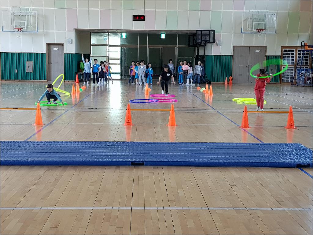 오늘은 여러 장애물을 작은꼬깔콘,큰 꼬깔콘,훌라후프, 장애물 넘기를 이용한 장애물 달리기를 해 보았답니다.