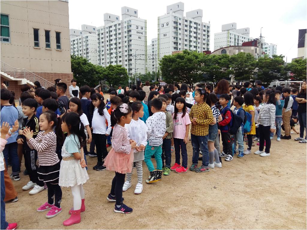 5월 16일 수요일에 돌봄친구들이 지진대피 민방위 훈련했습니다.
