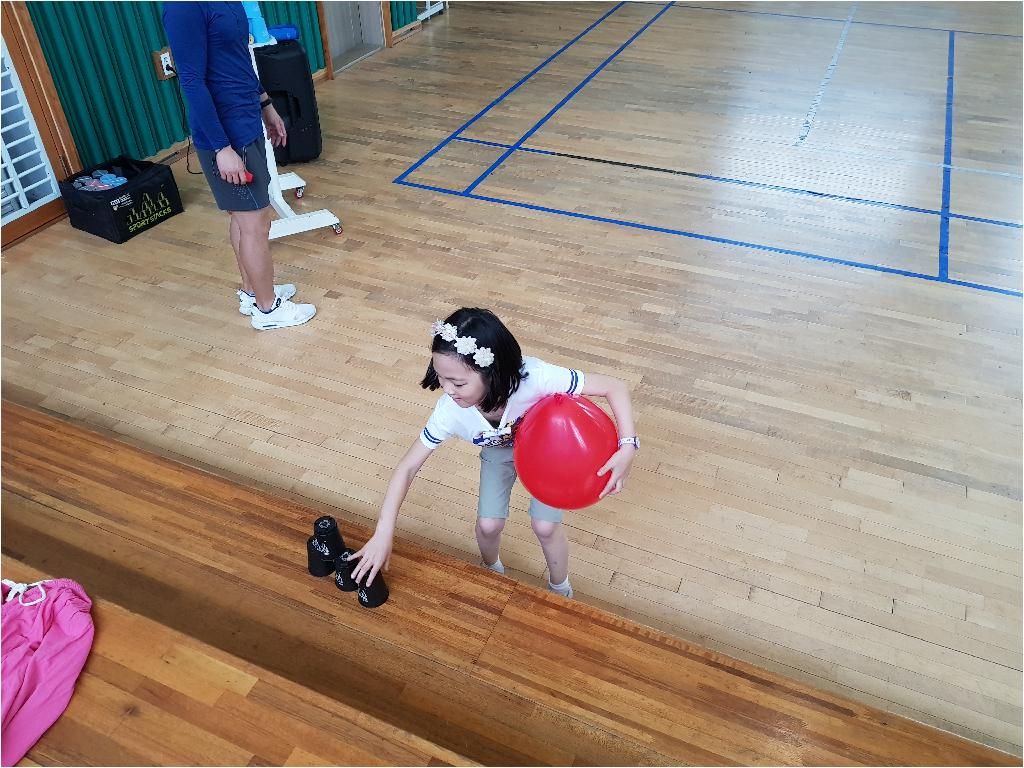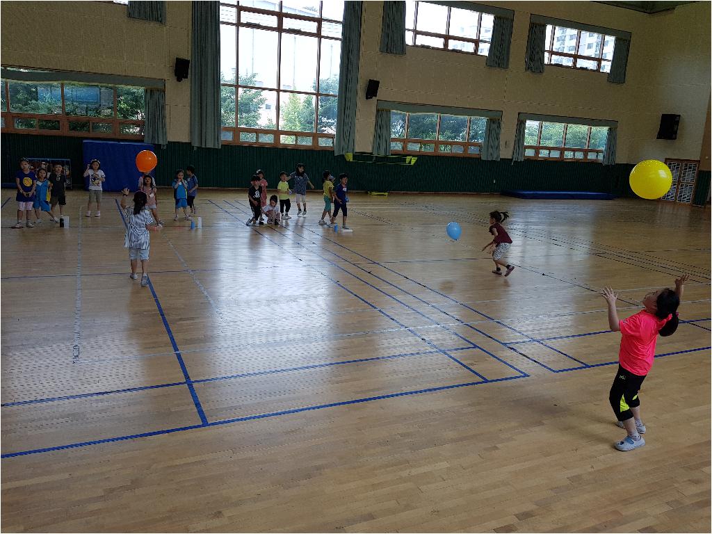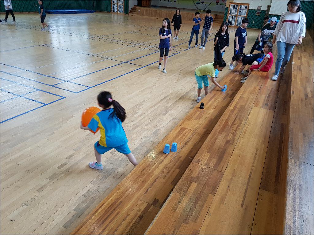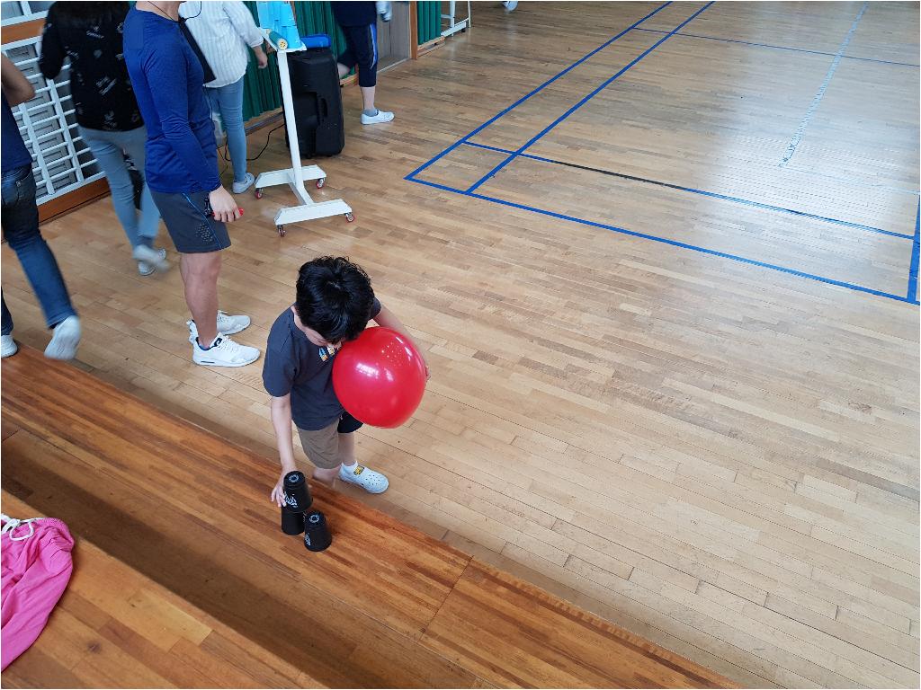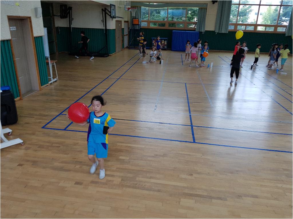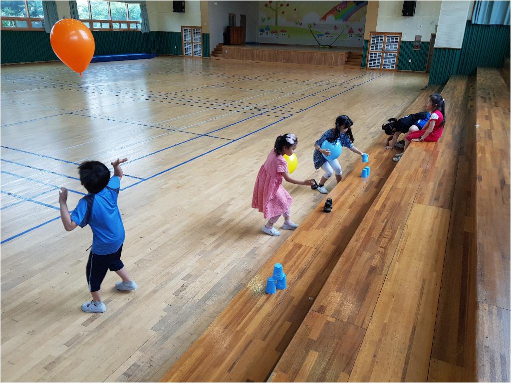 4팀으로 나누고 풍선과 컵을 들고 뛰어가
