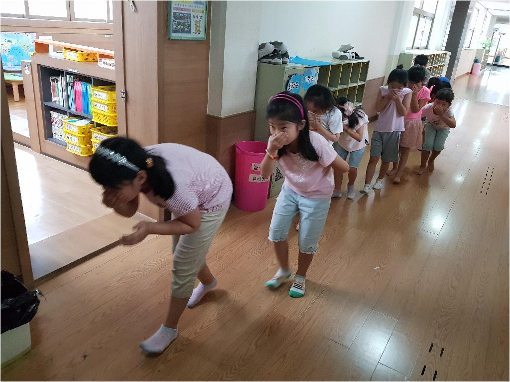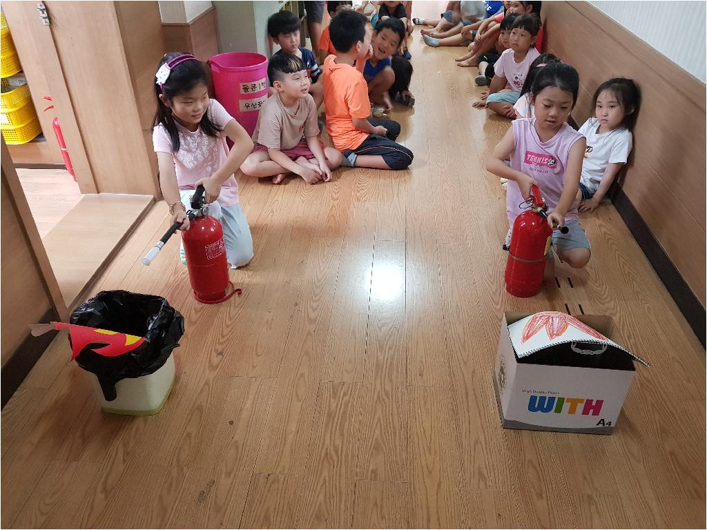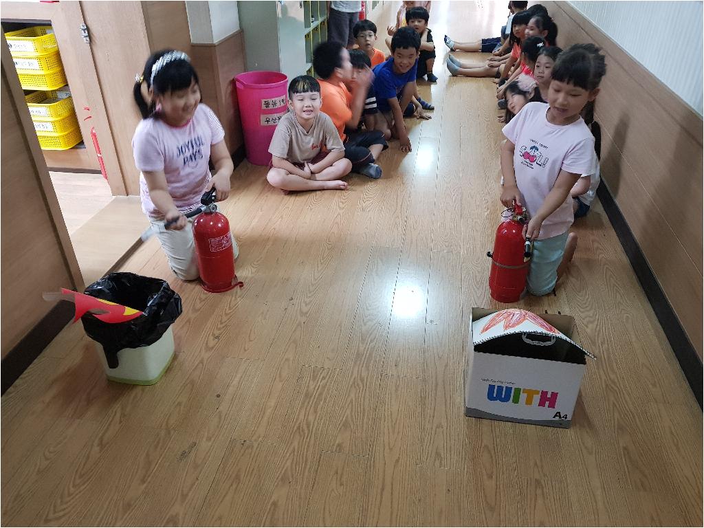 오늘은 아이들과 함께 뜨거웠던 열기만큼 뜨겁게 화재대피 훈련을 해보고